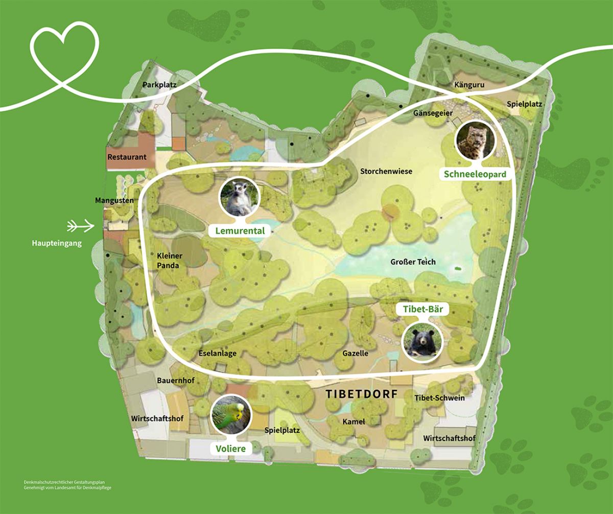 Das jetzige Storchental ist ein zentraler Bereich des historischen Gartendenkmals. Eine fließende Integration des neuen Geheges welches die bestehenden Blickachsen sicherstellt, ist uns sehr wichtig.