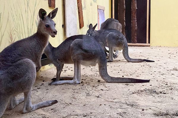 Te łagodne, pochodzące z Australii torbacze, nieszczególnie lubią temperatury poniżej 10 stopni. Dlatego lubią przytulać się do siebie w ogrzewanej stajni o powierzchni 83m²! Otwórz swoje serce i ogrzej nasze kangury.