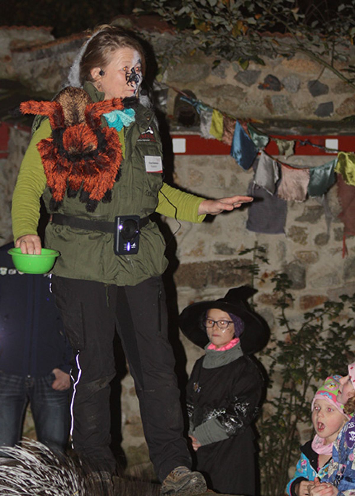 Czy to wywołujące dreszcz grozy halloweenowe prezentacje zwierząt, malowanie twarzy czy dyniowe safari - tego dnia każdy sympatyk gęsiej skórki znajdzie u nas coś dla siebie. Własną granicę strachu będzie można przekroczyć w stodole grozy, grzebiąc w wypluwkach bądź badając czaszki. Strasznej radości doświadczą mali i dużi podczas wyściugu taczek z dynią. Eksperci od zagadek będą mogli szukać pomarańczowych owoców w parku, doświadczając przy tym potwornych niespodzianek. Koronacją tego strasznego dnia będzie pokaz tańca z ogniem o godz. 18:00.